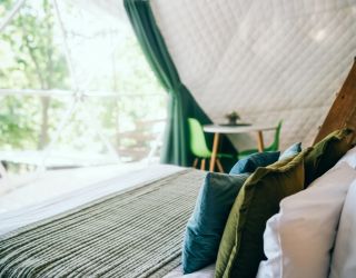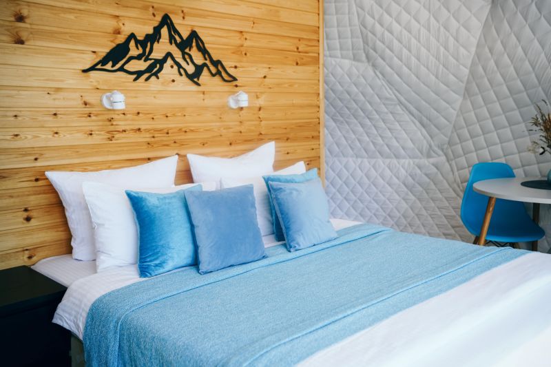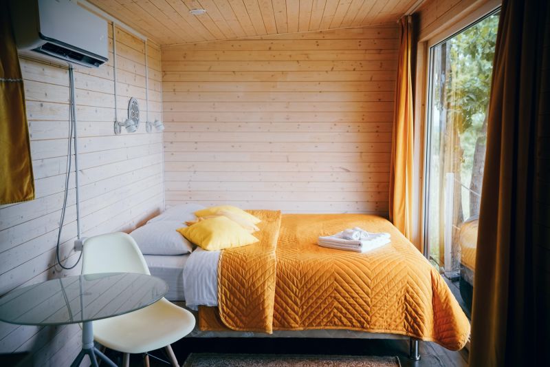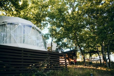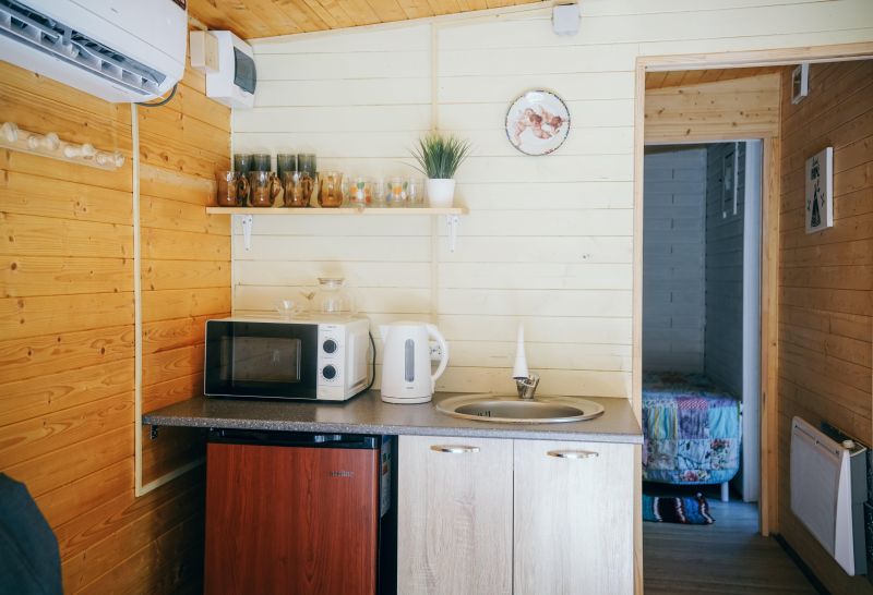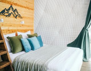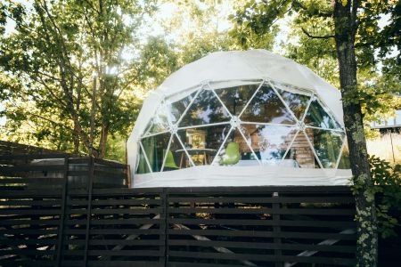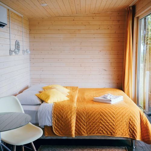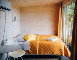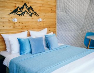 Гости могут разместиться в просторных полусферах с панорамными окнами или выбрать один из скандинавских домиков. В номерах есть все необходимое: санузел, мебель и бытовая техника: телевизор, холодильник, электрочайник. У каждого домика на террасе есть индивидуальный подогреваемый бассейн-джакузи.