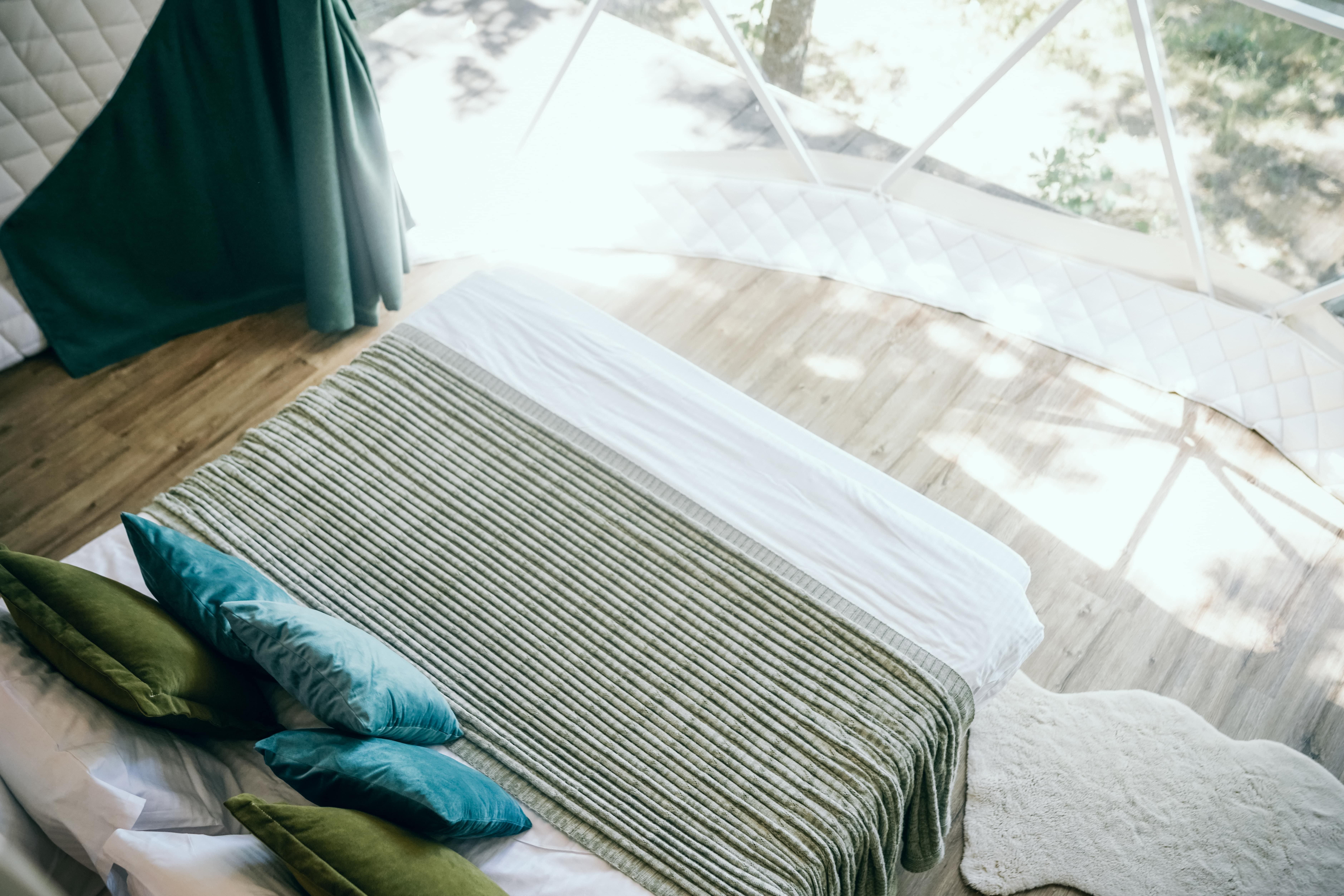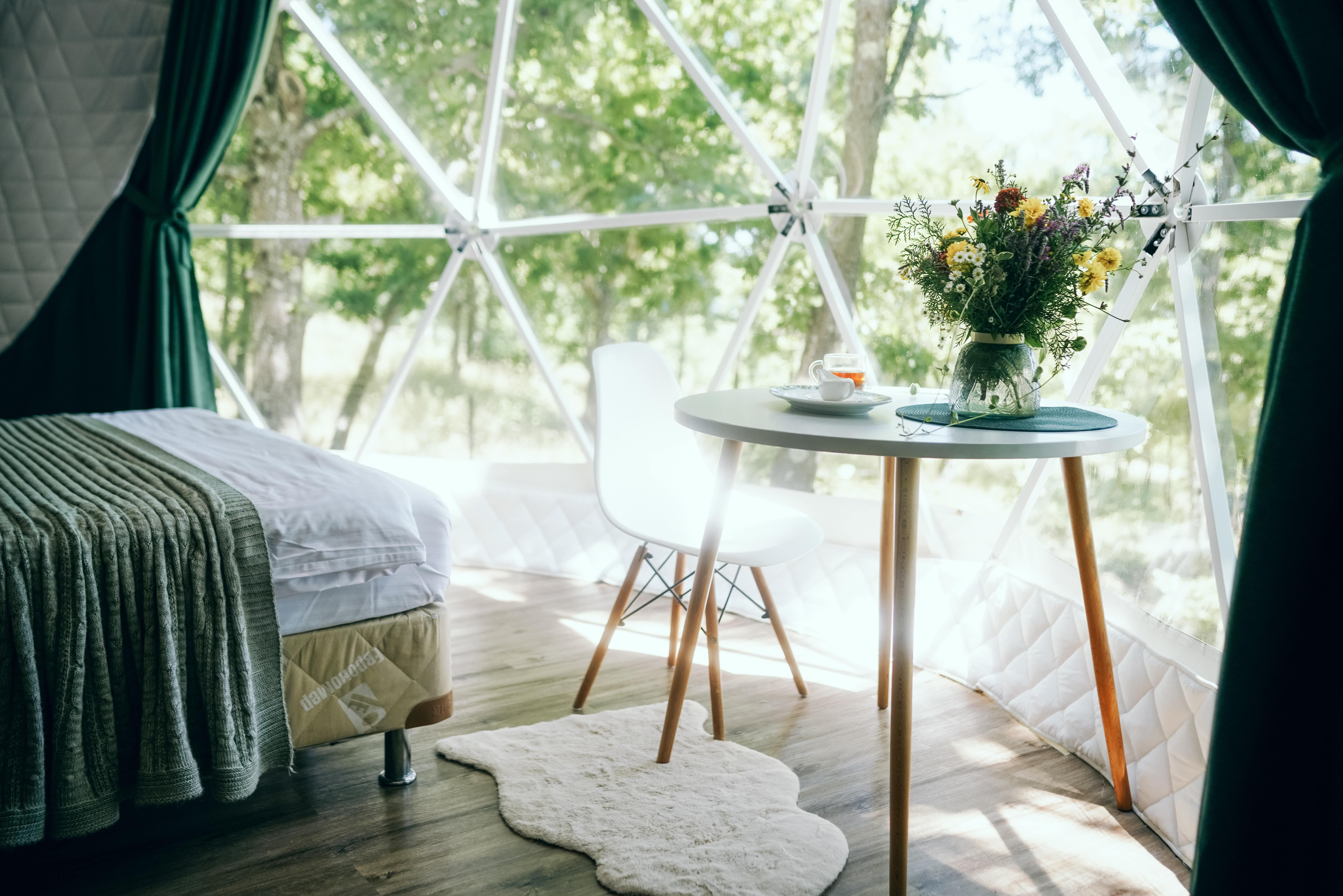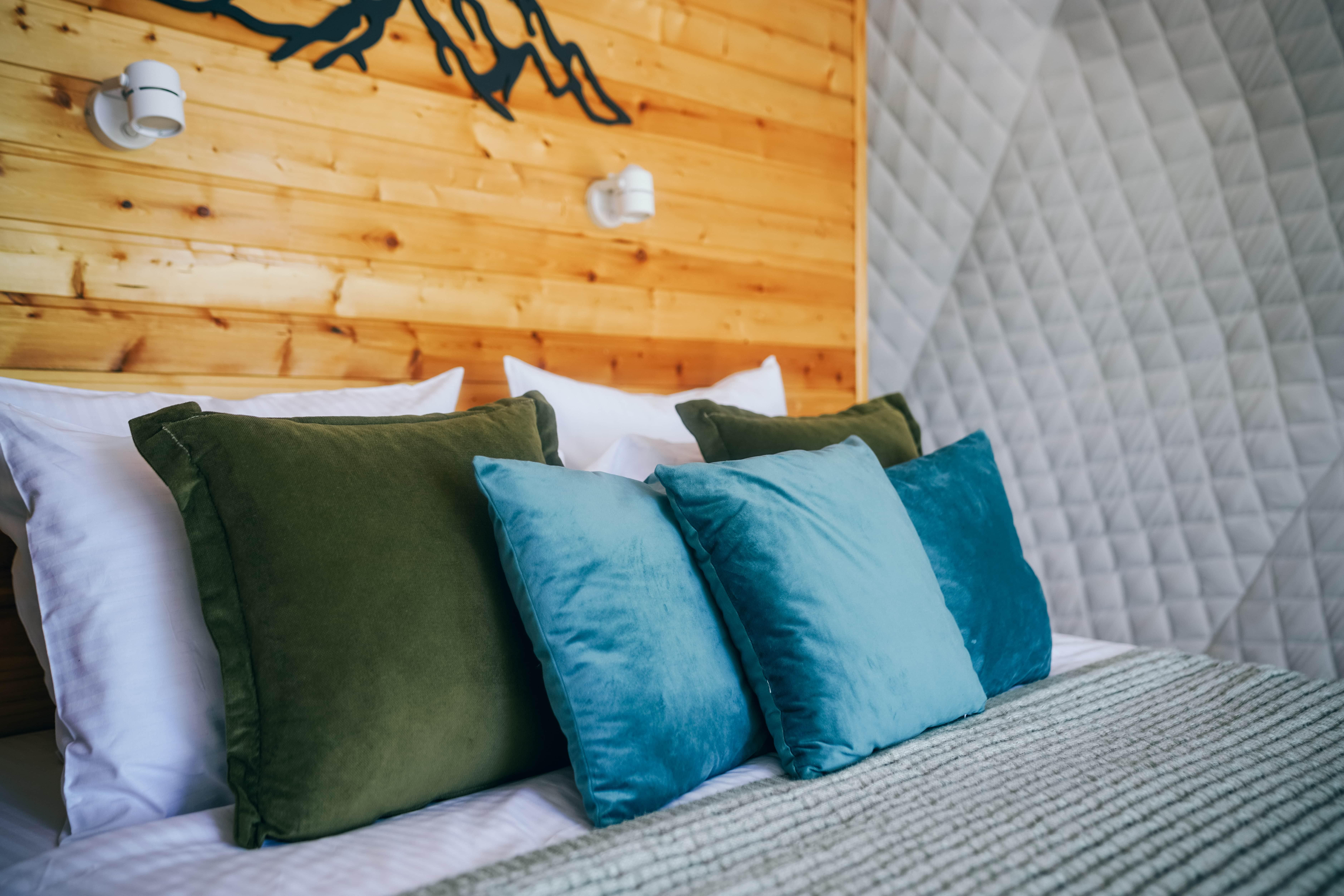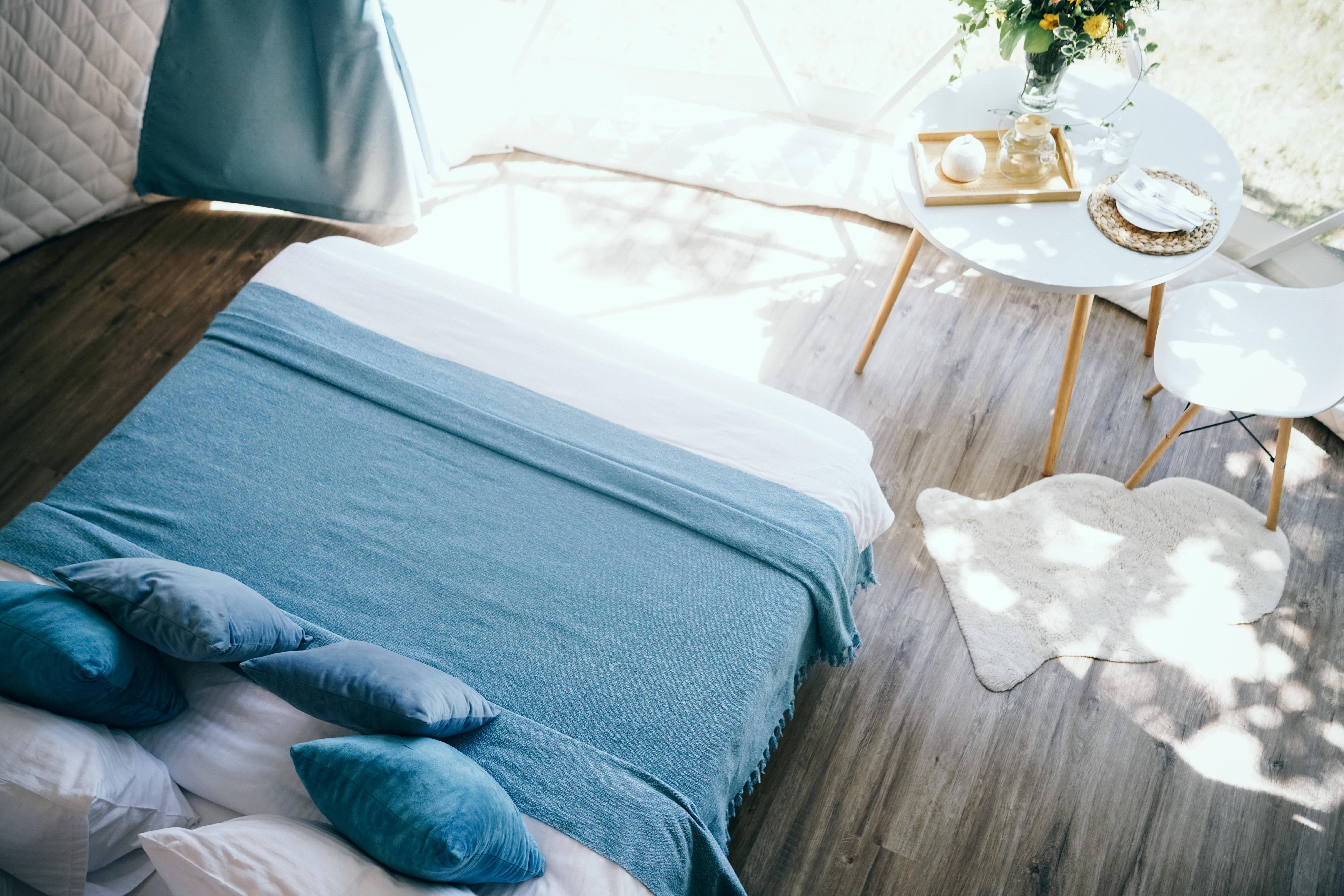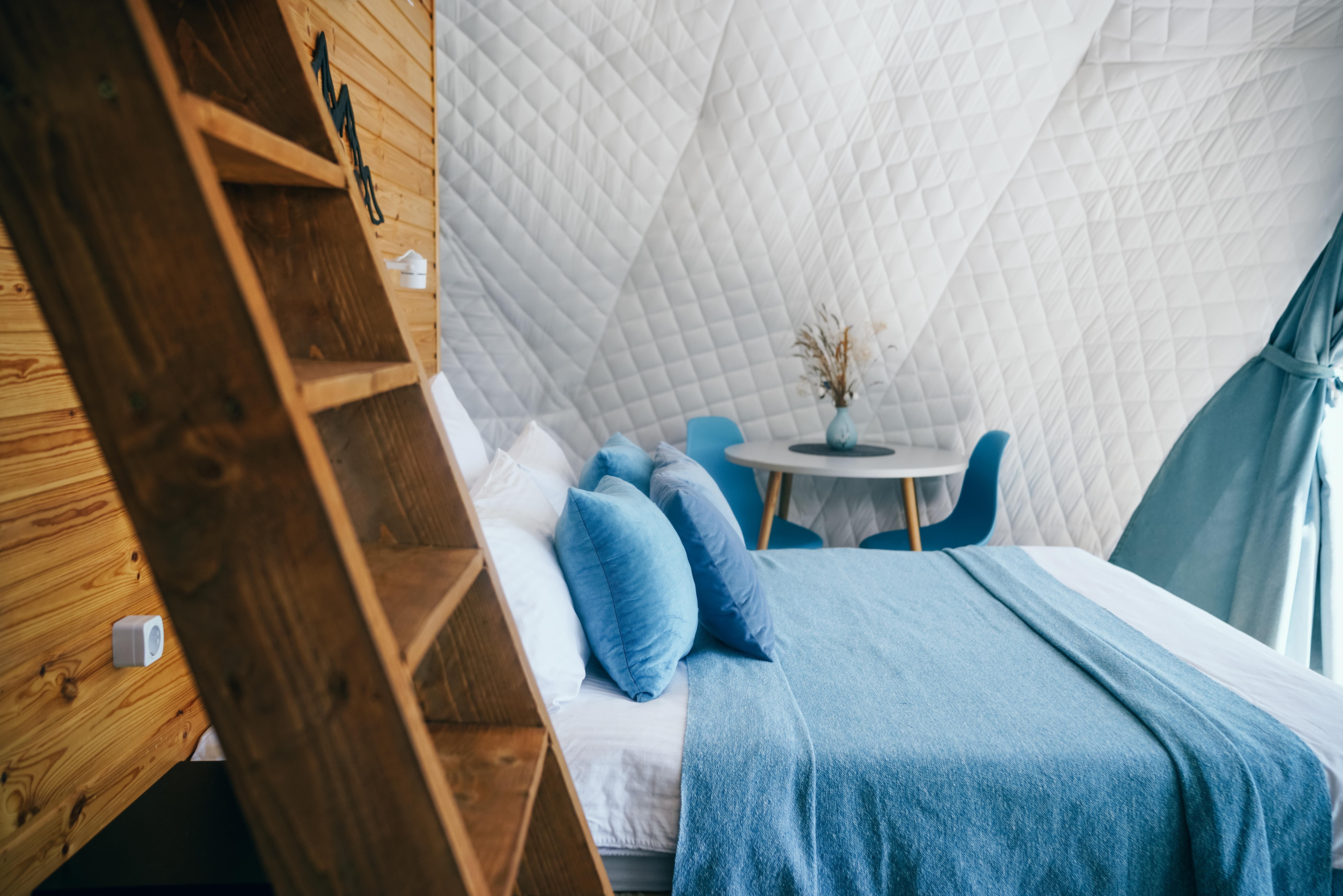 - Мебель: вешалка, диван, зеркало, кровать двуспальная, прикроватные тумбочки, стол, стулья, шкаф